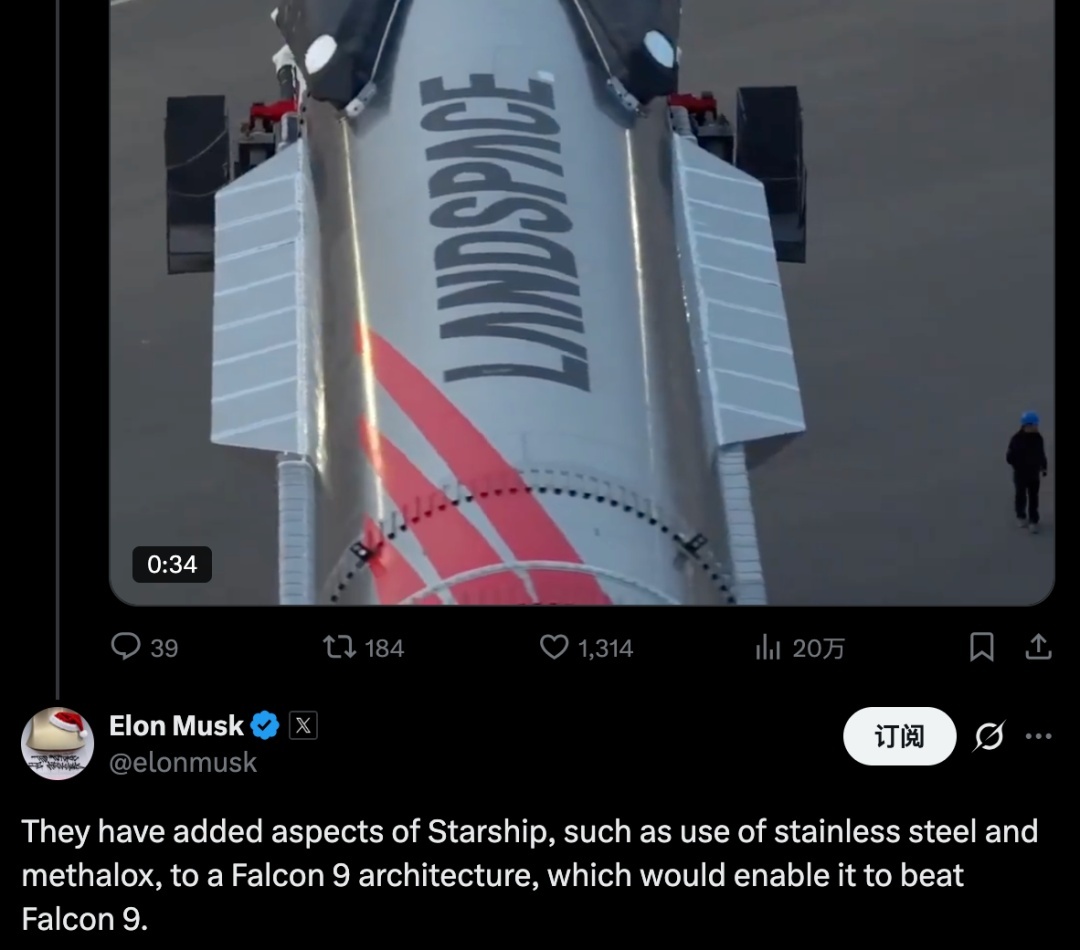 早在朱雀三号首飞之前,马斯克就曾在X上评价说:他们在猎鹰九号的架构中加入了星舰的特性。