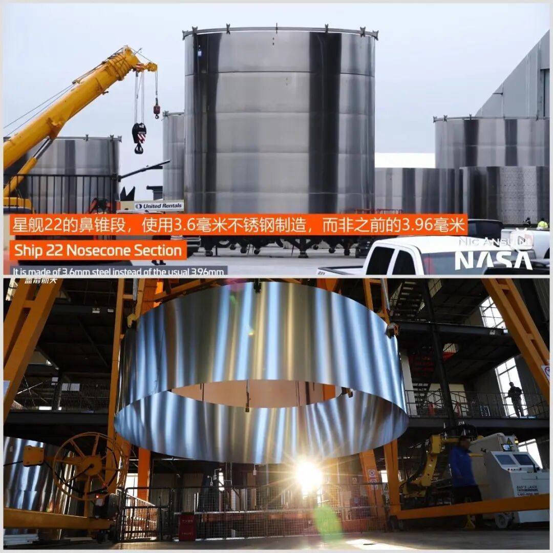 上图:星舰的不锈钢筒段;下图:朱雀三号的不锈钢筒段