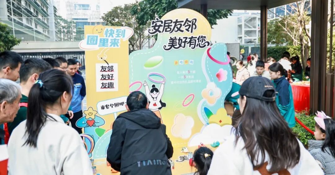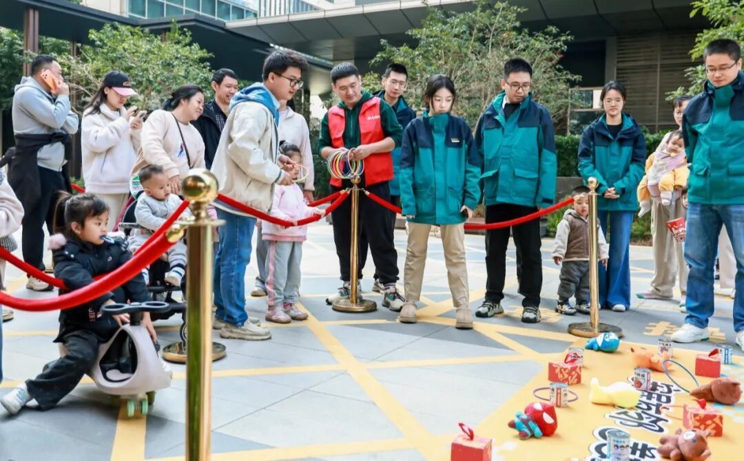 与此同时,社区内的互动活动热闹开展:亲子绘本阅读与手工共创现场,满是孩子的笑声与家庭的温情;邻里趣味游园会的套圈游戏前,大人小孩排起长队,欢呼声、笑语声此起彼伏……这些活动,一场场充满烟火气的互动,正是“友邻社区”以人文共融为纽带、让邻里温情自然流动的生动缩影。