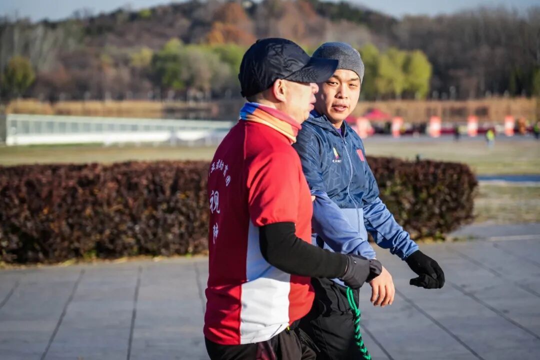 这之后,宋海峰加入了助盲团,每周三和周六早上在奥森公园陪盲友跑步。直到一年后的北马,这个陕西汉子终于牵起了那条绳子。